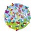 Hra precvičujúca zrakové vnímanie a rozpoznávanie farieb a reflexov. Motýle by mali byť rozptýlené a premiešané na podložke a potom sa môže hádzať kockami. Nakreslené farby na kocke označujú motýľa, ktorého dieťa musí nájsť. Kto prvý nájde toho správneho motýľa? Sada obsahuje 1 gumenú podložku (priemer 45 cm), 41 drevených motýľov (cca 5 cm), 3 drevené kocky, 1 vrecko. • pre 2-4 hráčov • od 4 rokov