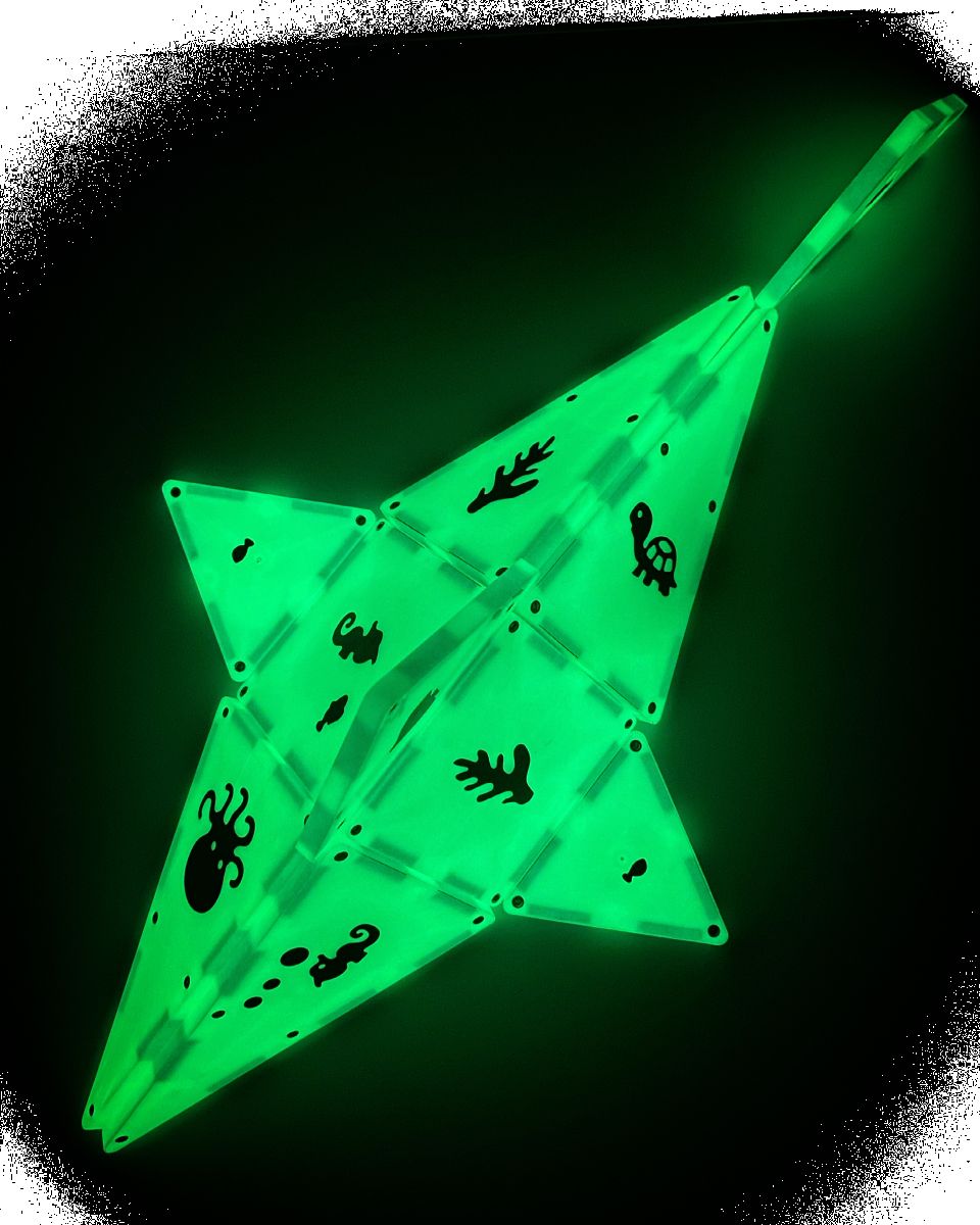 Žiarivá vlastnosť magnetických dielikov sa aktivuje pri priamom kontakte so slnečnými lúčmi alebo pomocou svetla z priloženého zdroja. Ako to funguje? Dlaždice obsahujú fosfor, bezpečný a prirodzene sa vyskytujúci minerál, ktorý po nabití energiou vyžaruje svetlo.