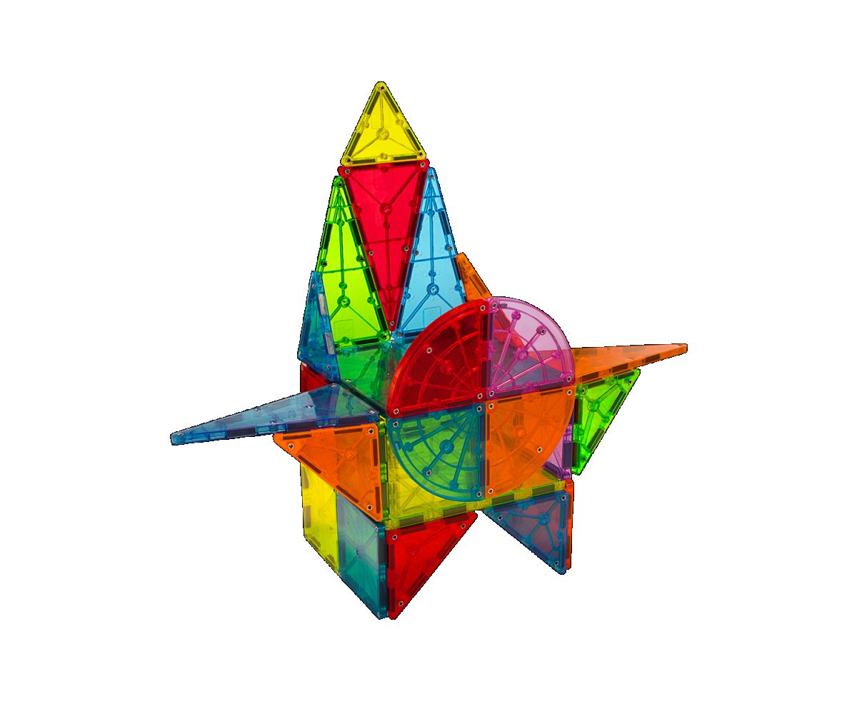 Sada obsahuje 110 magnetických dielikov: 56x štvorec, 2x veľký štvorec, 12x rovnostranný trojuholník, 12x pravouhlý trojuholník, 10x rovnoramenný trojuholník, 2x kolesový podvozok,