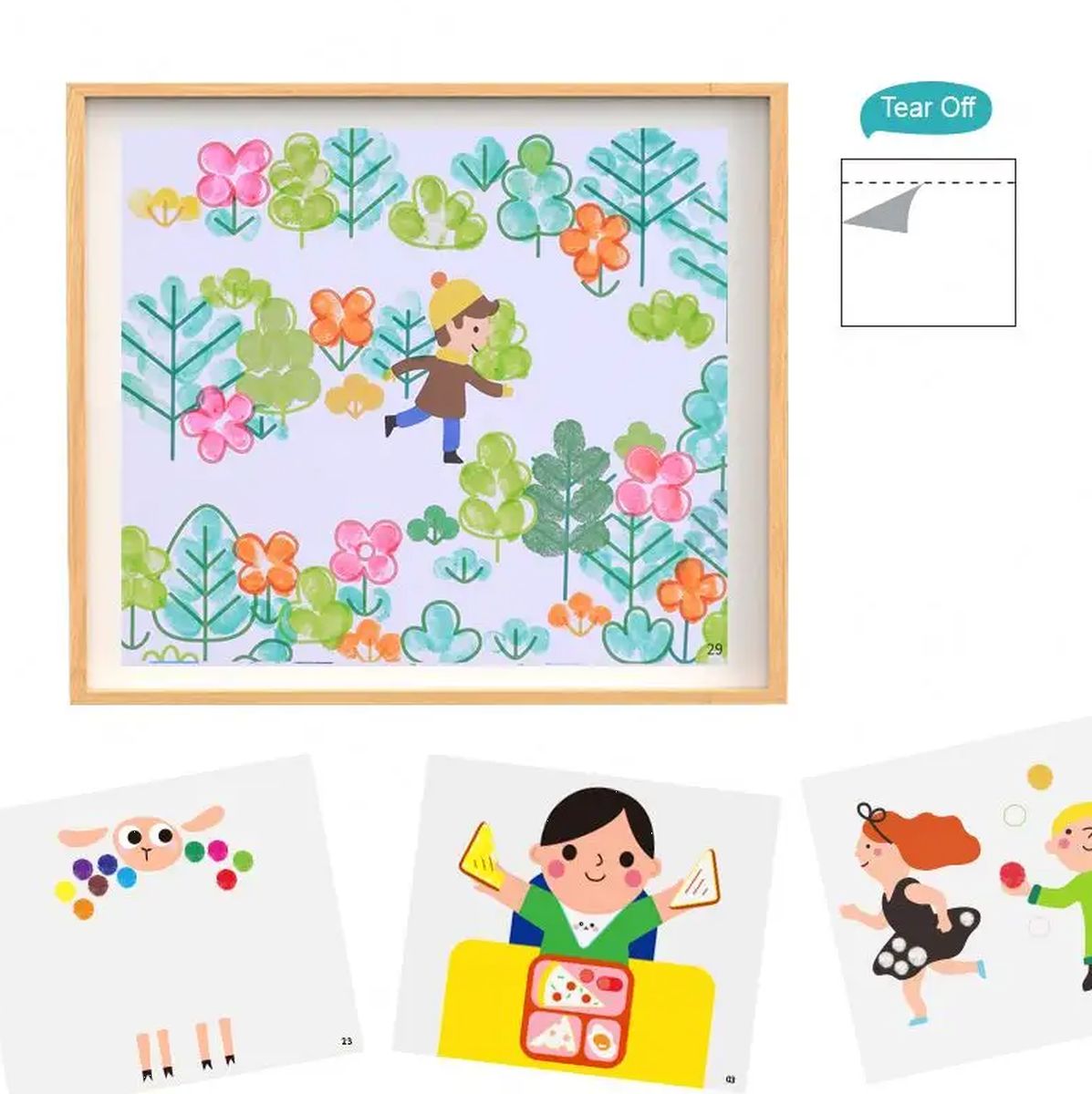 Deti tak môžu využiť predlohy aj v začiatkoch bodkovania – dot paintingu alebo klasického maľovania štetcom. Cvičia si pritom jemnú motoriku, grafomotoriku a zoznamujú sa s kúzelným svetom tvorenia. Nakoniec im zostanú krásne obrázky, ktoré sa dajú z bloku jednoducho vytrhnúť.