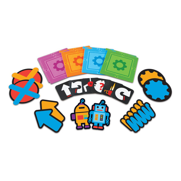 Obsahuje: 20x farebná penová podložka, 20x obojstranná príkazová kartička, 2x kartička Robot, 2x kartička Pružina, 2x kartička Ozubené koleso, 2x kartička Šípka, 2x kartička Zákaz.