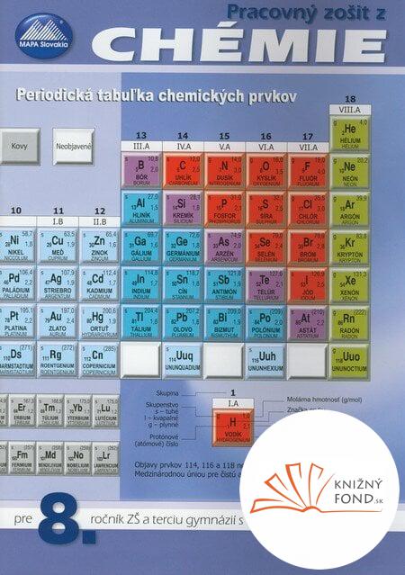 Chemický zošit pre 8. ročník základných škôl je v súlade s novým obsahom predmetu v ŠVP ISCED 2. Koncepčne a obsahovo nadväzuje na štátny vzdelávací program ŠVP pre 8. ročník ZŠ. Obsahovo je zameraný na dva tematické okruhy: 1. Zloženie látok, 2. Významné chemické prvky a zlúčeniny. Zošit na 44 stranách obsahuje množstvo rozmanitých úloh, krížoviek, doplňovačiek, ale je tu aj priestor pre úlohy zadané učiteľom a dostatok miesta na poznámky žiaka. Na obálkových stranách nájdu žiaci aktuálnu farebnú periodickú sústavu prvkov. V strede zošita nechýba vyberateľná predtlač na 3 laboratórne práce.