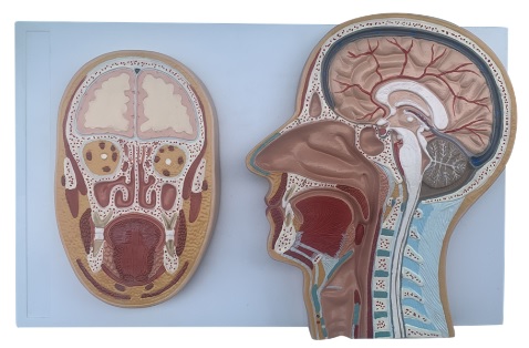 Model detailne ukazuje všetky štruktúry ľudskej hlavy. Vyrobený z umývateľného PVC, odolného proti nárazom.