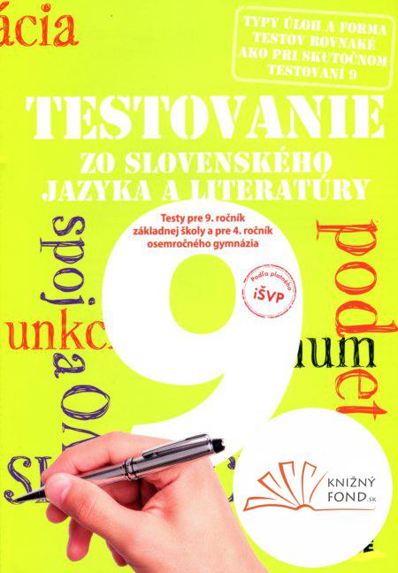 Každý z testov v pracovnom zošite Testovanie 9 zo slovenského jazyka a literatúry je tematicky vyvážený – obsahuje učivo z jazykovej, slohovej a literárnej zložky. Pracovný zošit Testovanie 9 zo slovenského jazyka a literatúry je určený pre žiakov 9. ročníka ZŠ a 4. ročníka osemročných gymnázií ako pomôcka na: overenie úrovne čitateľských a jazykových kompetencií, precvičovanie schopnosti žiakov porozumieť a interpretovať rôzne druhy textov, zopakovanie učiva z jazykovej, slohovej a literárnej zložky SJL, zdokonalenie získaných teoretických vedomostí a interpretačných zručností, osvojenie si práce s formou a typmi úloh obdobnými s úlohami Testovania 9. Koncepcia pracovného zošita Testovanie 9 zo slovenského jazyka a literatúry je zostavená tak, aby žiak prostredníctvom kľúča správnych odpovedí na konci publikácie dostal okamžitú spätnú väzbu na dosiahnutú úroveň svojich vedomostí. 4. vydanie rok 2019