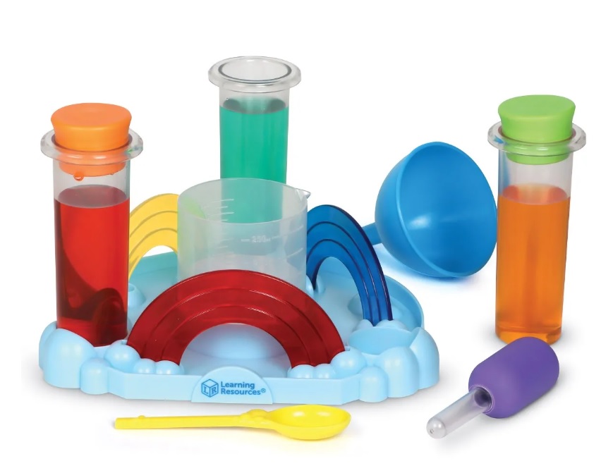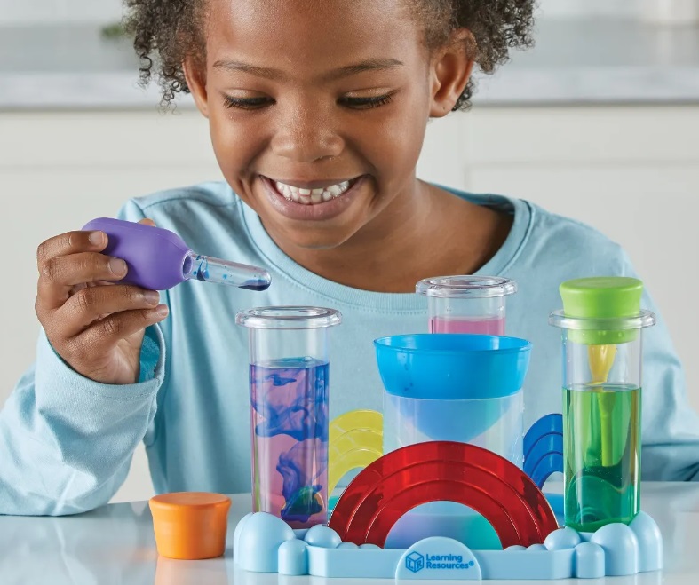 Farebné šošovky, skúmavky, kadička, lievik a kvapkadlo sú navrhnuté pre malé detské rúčky, ľahko sa držia a pomáhajú deťom rozvíjať jemnú motoriku pri experimentovaní. Umožňujú vykonať 10 zábavných vedeckých experimentov pre deti na rozvoj pozorovania, objavovania, kreativity a ďalších STEM zručností.